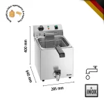 Φριτέζα ηλεκτρική A162823E | SNACK III PLUS διαθέτει έναν ισχυρό ηλεκτρικό θερμοστάτη, που επιτρέπει την ακριβή ρύθμιση της θερμοκρασίας για την επίτευξη των επιθυμητών αποτελεσμάτων. Επιπλέον, διαθέτει υψηλής ποιότητας ανοξείδωτο ατσάλι για την κατασκευή του κορμού, που την καθιστά ανθεκτική στην καθημερινή χρήση και εύκολη στον καθαρισμό. Η φριτέζα διαθέτει ένα βρυσάκι απορρόης, που διευκολύνει τον αποχέτευση του λαδιού μετά το μαγείρεμα.