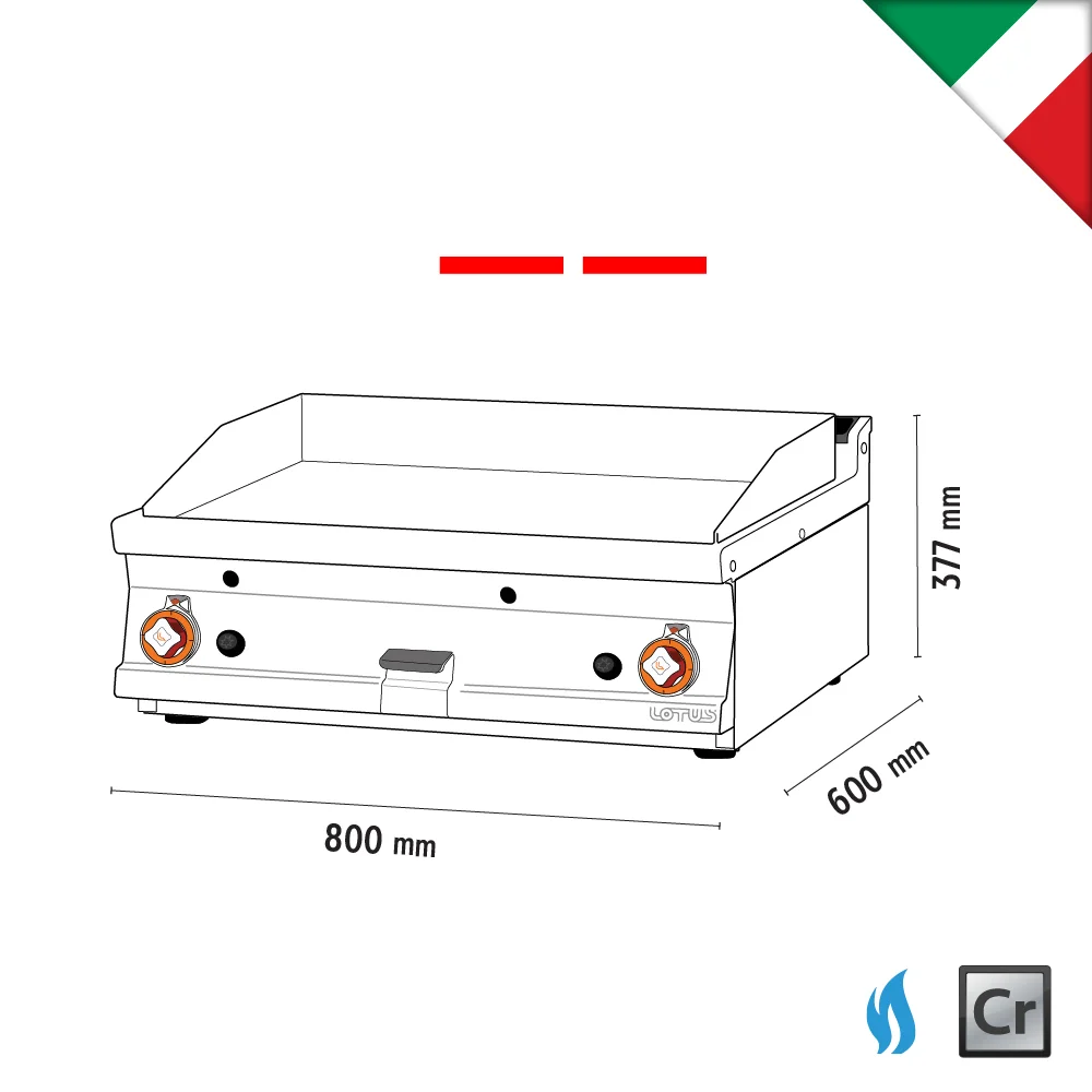 Πλατώ αερίου διπλό λείο Superchrom FTLT-68GS με ισχύ 12kW. Διαθέτει λεία πλάκα και είναι ιδανικό για υγιεινό ψήσιμο και κατάλληλο για όλα τα είδη τροφίμων όπως κρέατα και λαχανικά. Λειτουργεί με υγραέριο αυξάνοντας έτσι την αποδοτικότητα και μειώνοντας την κατανάλωση και το χρόνο προθέρμανσης. Καθώς δεν διαθέτει βάση τοποθετείται σε ανοξείδωτο τραπέζι ή σε πάγκο εργασίας.